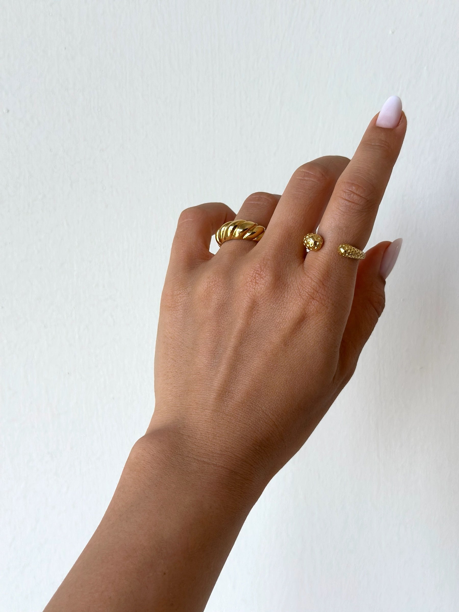 - Anello aperto con trama martellata a taglie