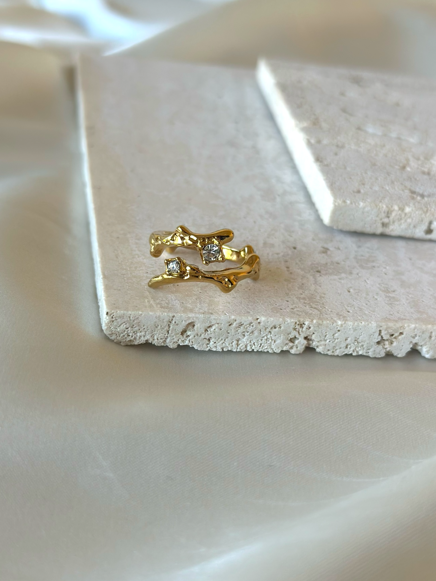 Anello a fascia con zirconi bianchi in acciaio inossidabile che ti abbraccia il dito, di forma irregolare;