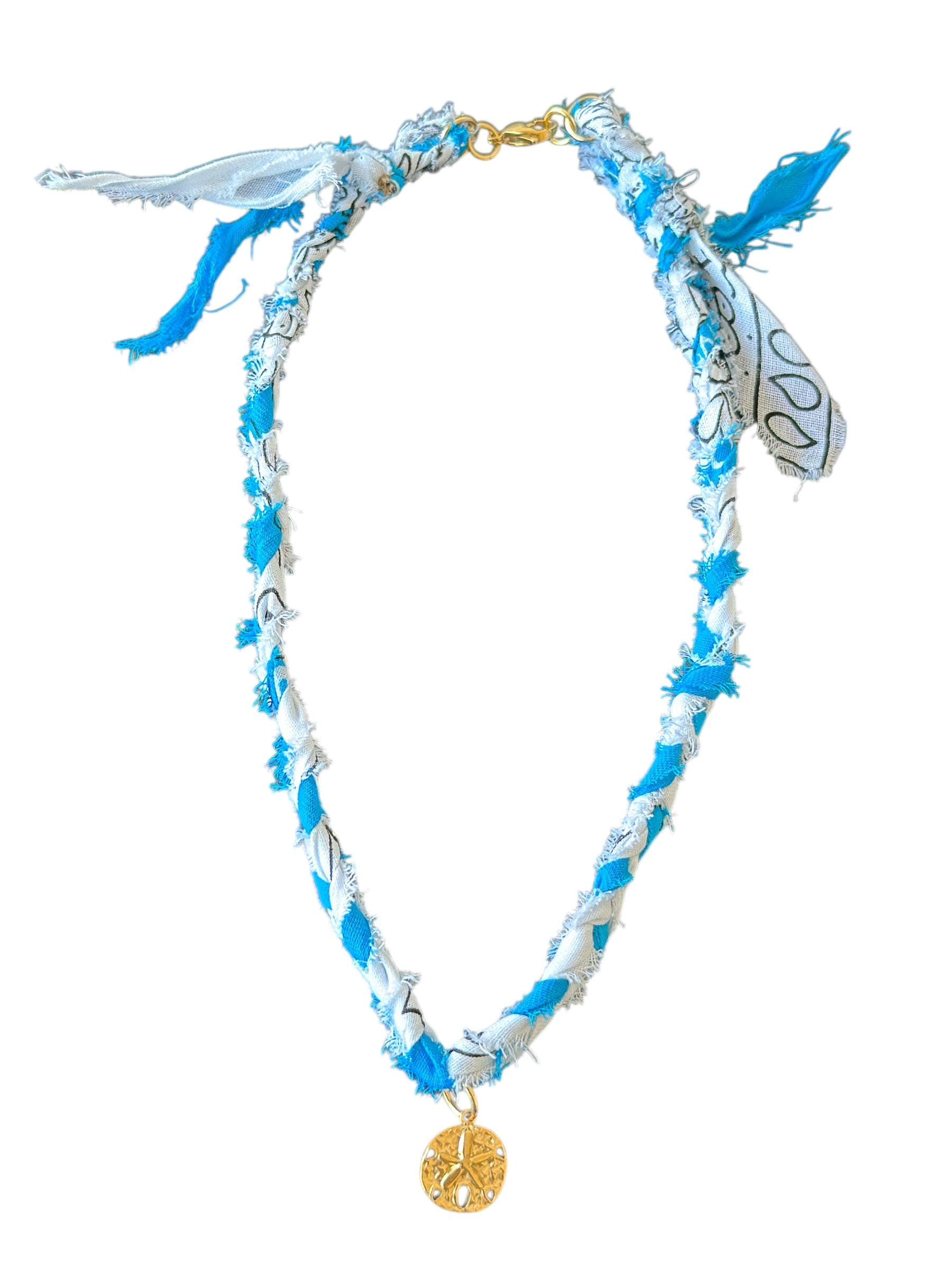 Create a mano, con componenti e ciondoli in acciaio inossidabile. È consigliato non bagnarle per non rovinare l’intreccio della bandana in cotone