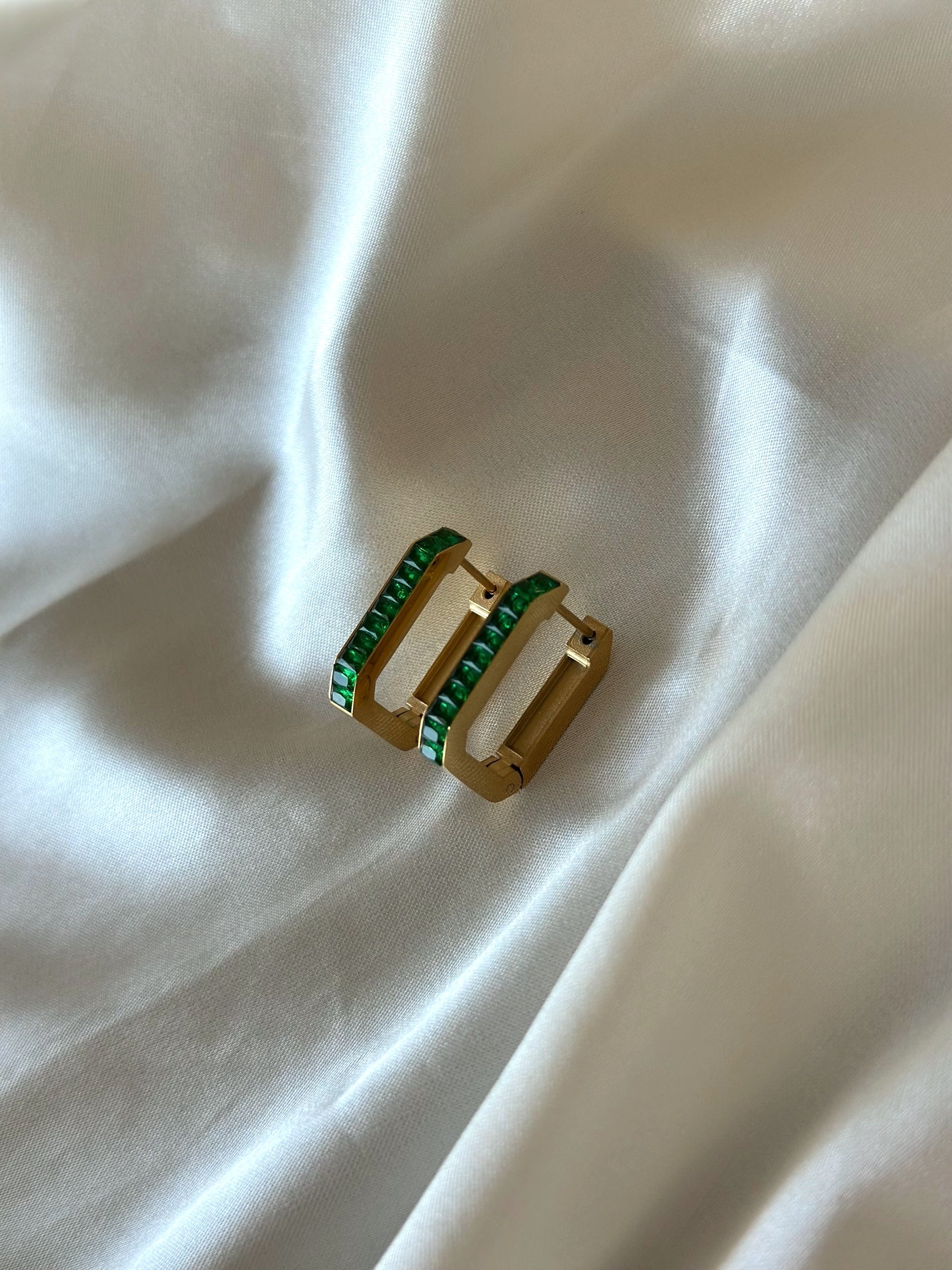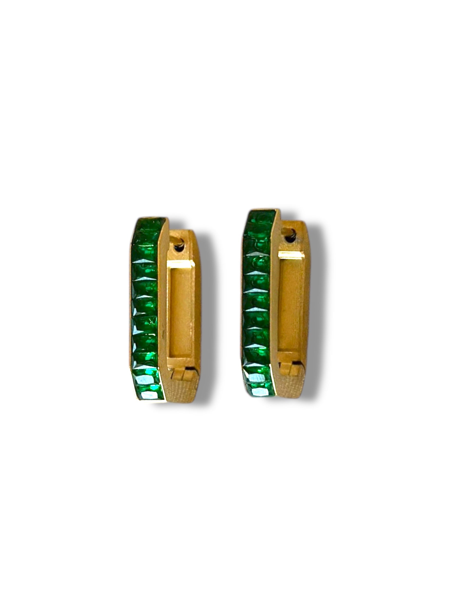 Orecchini a scatto con zirconi a forma rettangolare in acciaio inossidabile